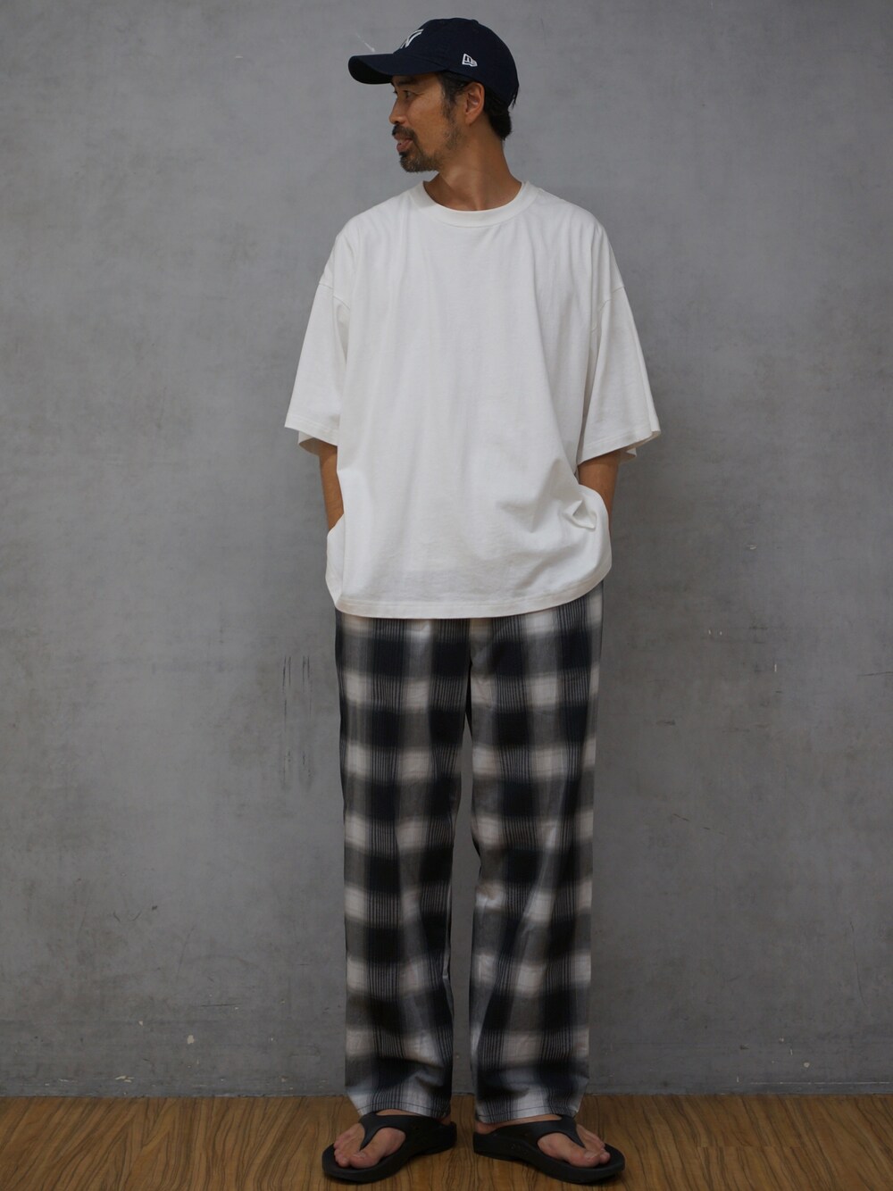 シンプルなモノトーンコーデにこなれ感のあるチェックパンツでインパクトだしてみました。