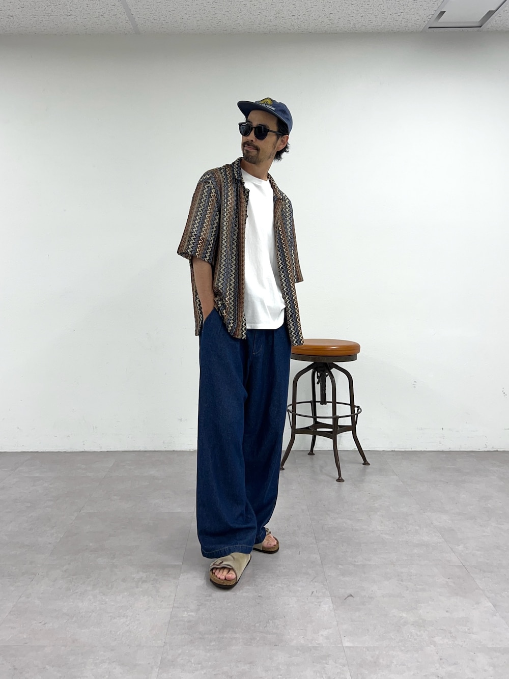 レース編みのシャツと接触冷感な薄い素材のデニムで夏の大人のリゾートコーデを組んでみました