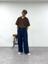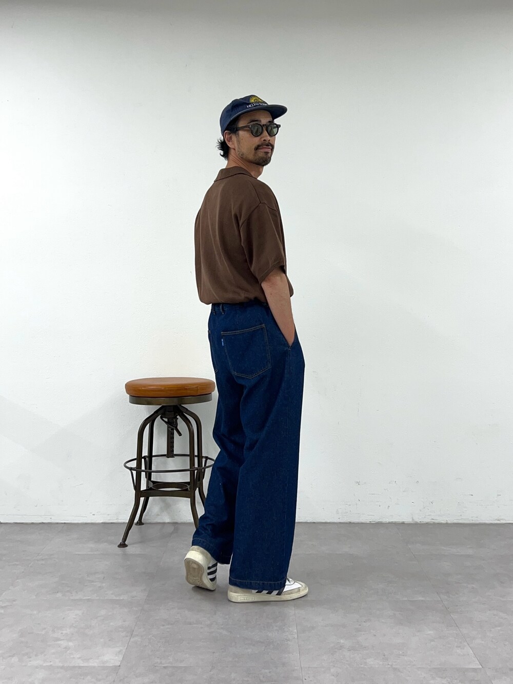 ニットポロをタック入りのワイドパンツにインしたトレンドのスタイルです。 クラシック感がありながらもスッキリとした着こなしになるのでオススメです♪