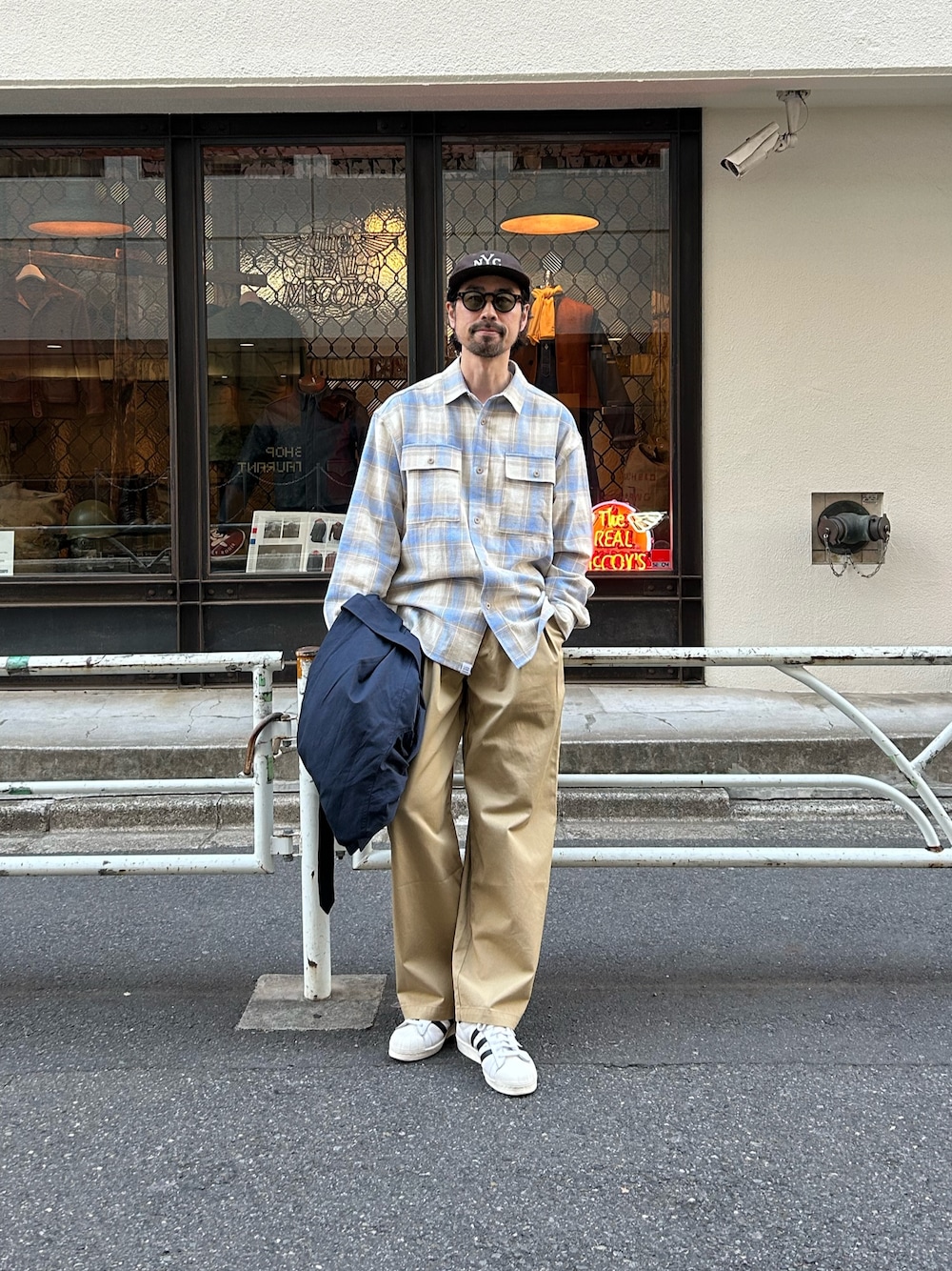 まだ寒い時期ですが、春色チェックなシャツはレイヤードで先取り感を出しやすいのでおすすめですね。