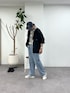 ブルーなチェックと同色デニムのアメカジスタイルにブラックのスッキリとしたナイロンパーカーを合わせました。 シャツもタックインしてより、こなれた雰囲気に仕上げたつもりですw