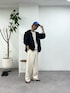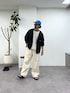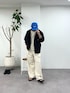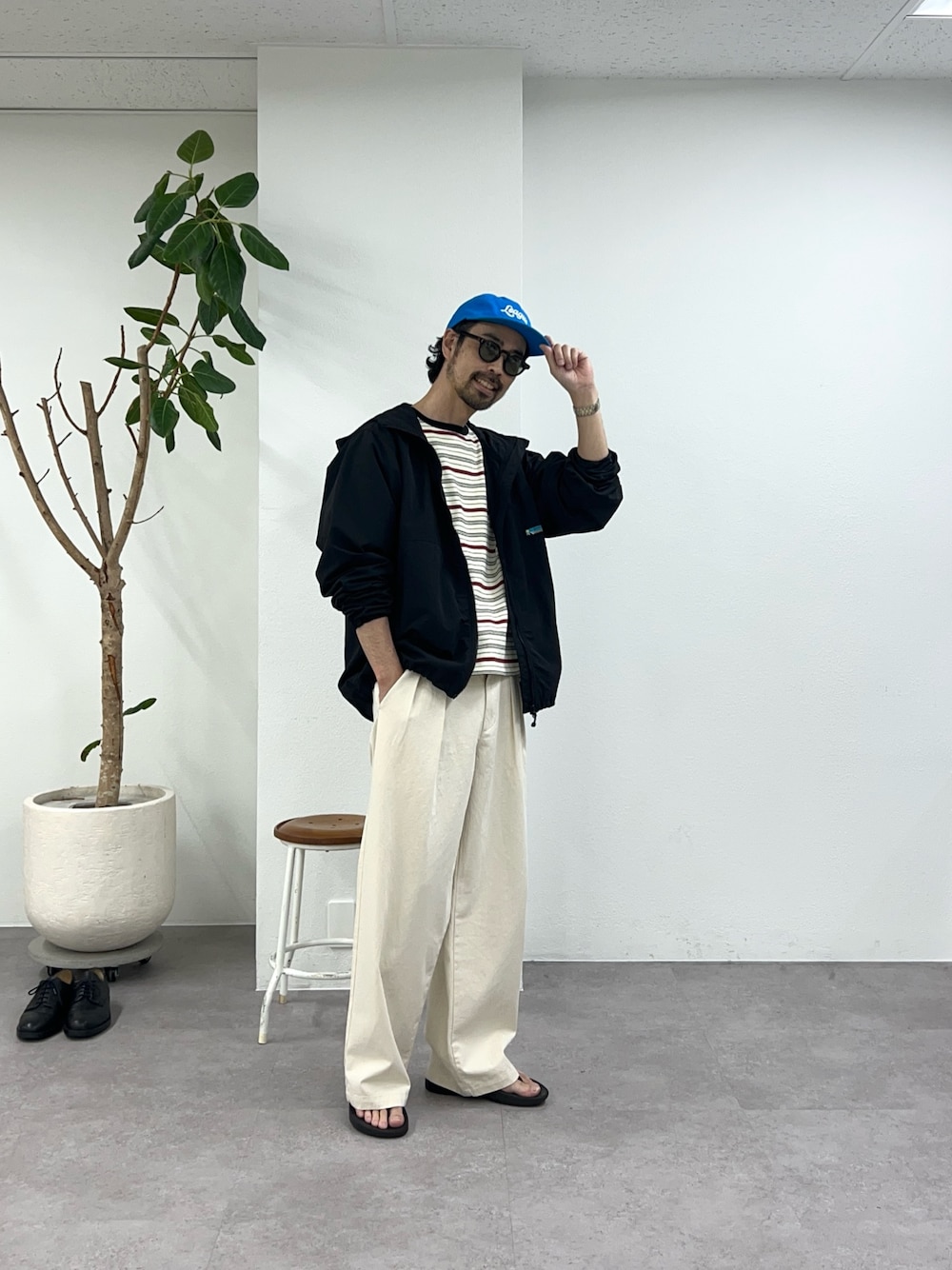 ブラックのナイロンパーカーでもホワイトベースのコーデに加えれば爽やかなマリンスタイルになります♪