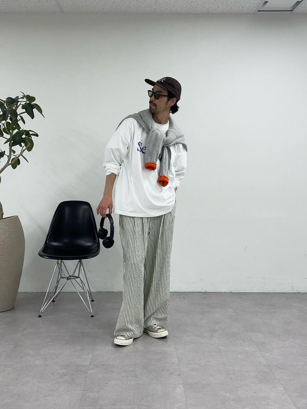 通称パジャマパンツを使ってみた 実際は全くの別物、タックもありシルエットもいいです。テロっとした素材で、Tシャツとの合わせもサマになりますね