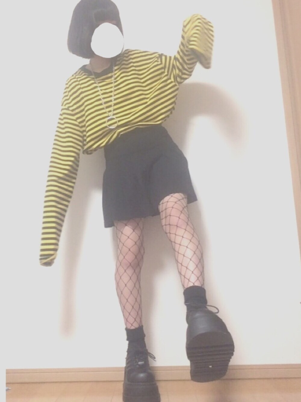 今回は女の子辛めコーデです(o_o)網タイツは太めにしました!