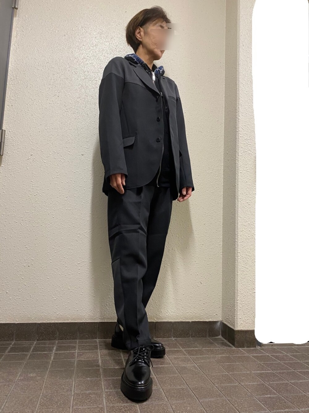 前回は白系今回は黒系ですねーwこのスーツ体操着みたいに動きやすいヤツです!切り替えもあるのでカジュアルで好き😘