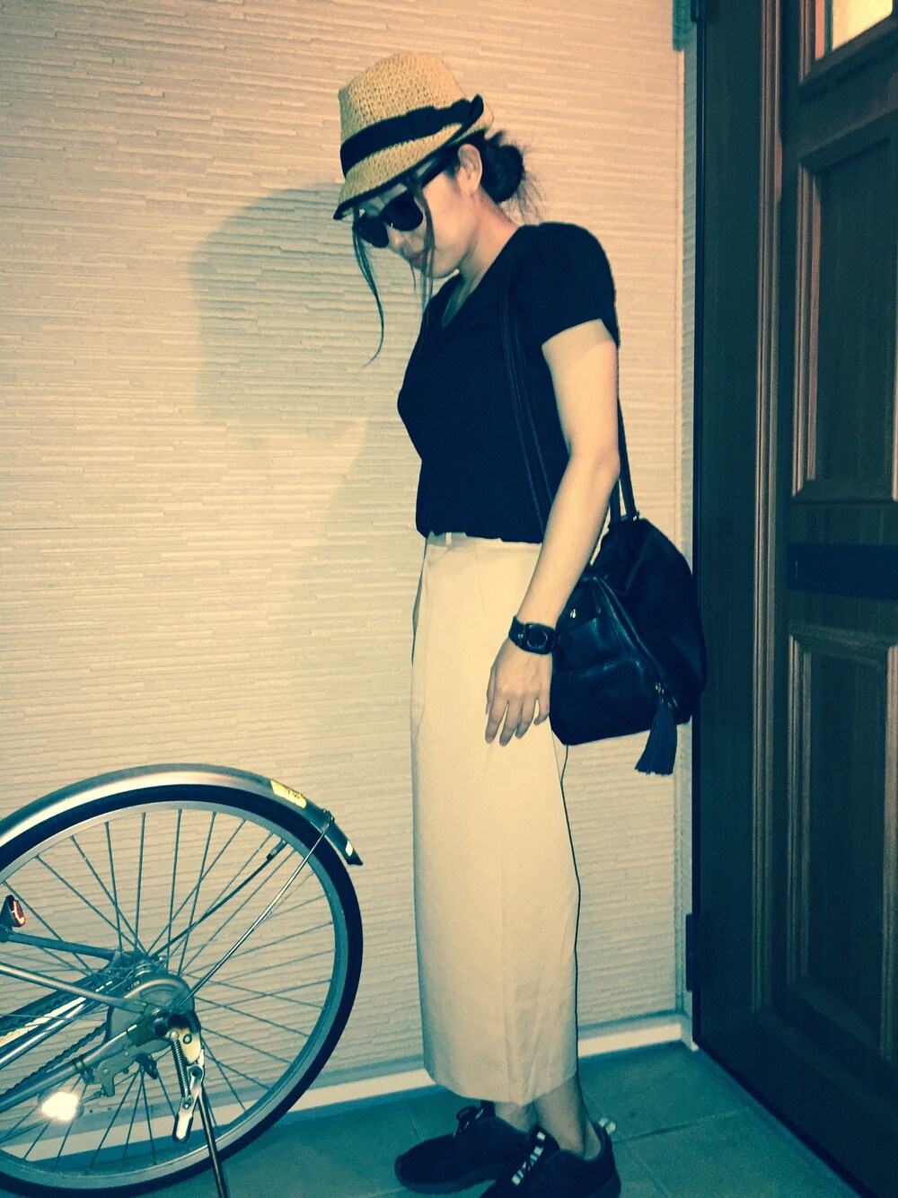 黒×ベージュのシンプルすきー❤︎ お買い物dayだったので、歩きやすいようにスニーカーで。。。