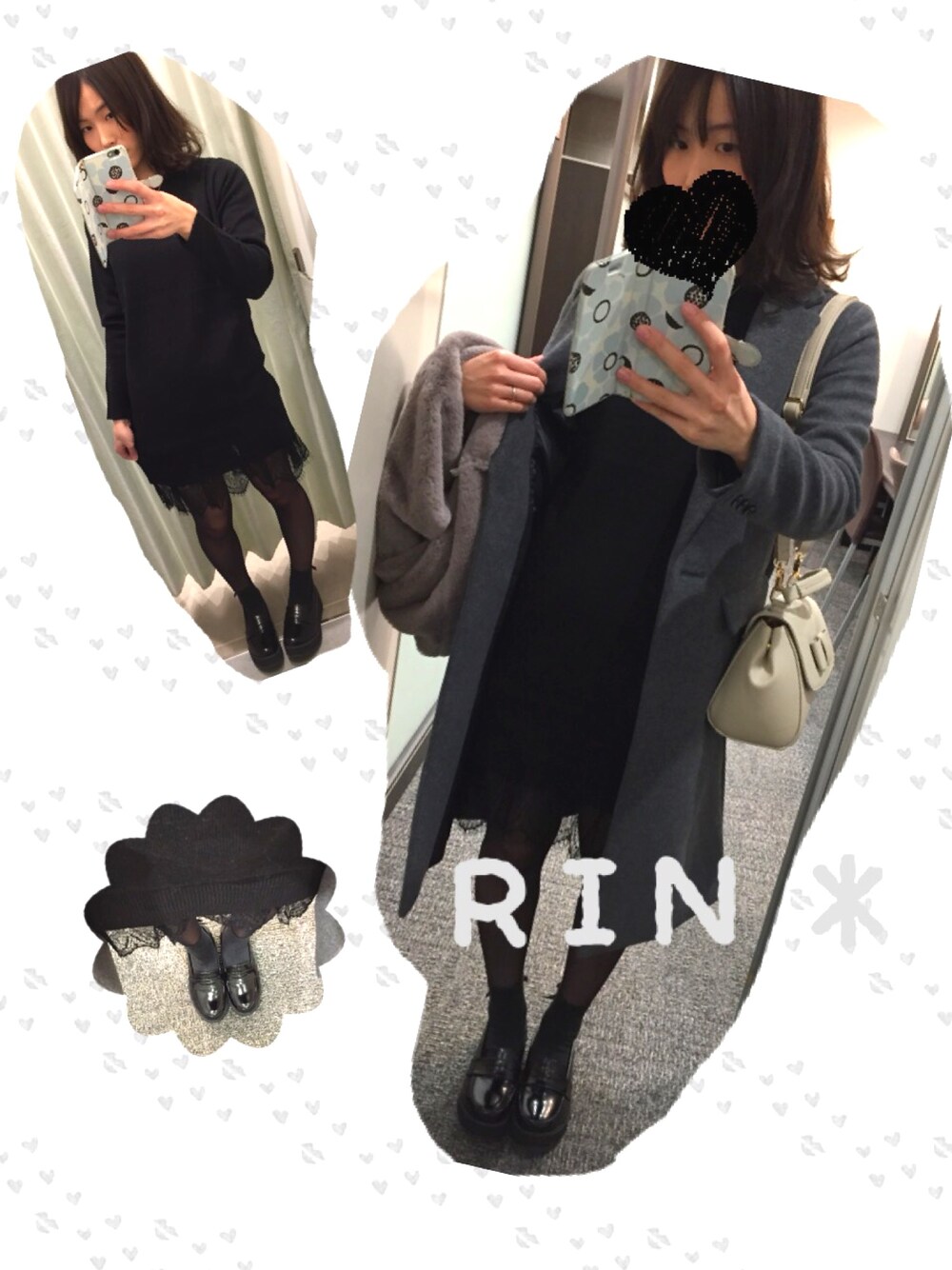 はじめまして!RIN*です! いつも♡、saveしてくださっている方、 フォローしてくださっている方、 ほんまにたくさんありがとうございます(*´˘`*)♡ 今日は桑名のイオンモールにお出かけにきておりまして、休日を楽しんでいます//// この前美容院で髪色をひさしぶりの黒色でイメチェンしました! ちょっとブルーが入ってて透明感が出ていてお気に入りです✧*。(ˊᗜˋ*)✧*。 なので、黒コーデでおとなっぽく、でもちょっとピンク系のメイクでコーディネートを考えてみました! 黒のニットワンピースは裾にレースがついていて、チャコールグレーのチェスターコートにファーのもふもふスヌードはピンクグレーでまとめてみました* これからまた寒くなりますが、みなさまお身体には気をつけて、いい年末年始が迎えられるように今年ももうすこし頑張りましょう٩(•̤̀ᵕ•̤́๑).*೨⋆*✩ みなさまの幸せな日々を願って(*˘︶˘*).。.:*♡
