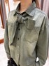 〈《セットアップ対応》デニムボウタイクロップドシャツ〉 ブルー/カーキの2色展開🫶 ラップデニムパンツ(6-0330-1-29-101)とセットアップで着用可能! カジュアルなデニム素材に、 胸元のボウタイデザインで女性らしさをプラス🎀 ボウタイは取り外し可能なので、シンプルなシャツとしても使えるのが嬉しいポイント◎ セットでも単品でも着回し自在! 一枚持っておくとコーデの幅がぐっと広がる万能アイテムです✨