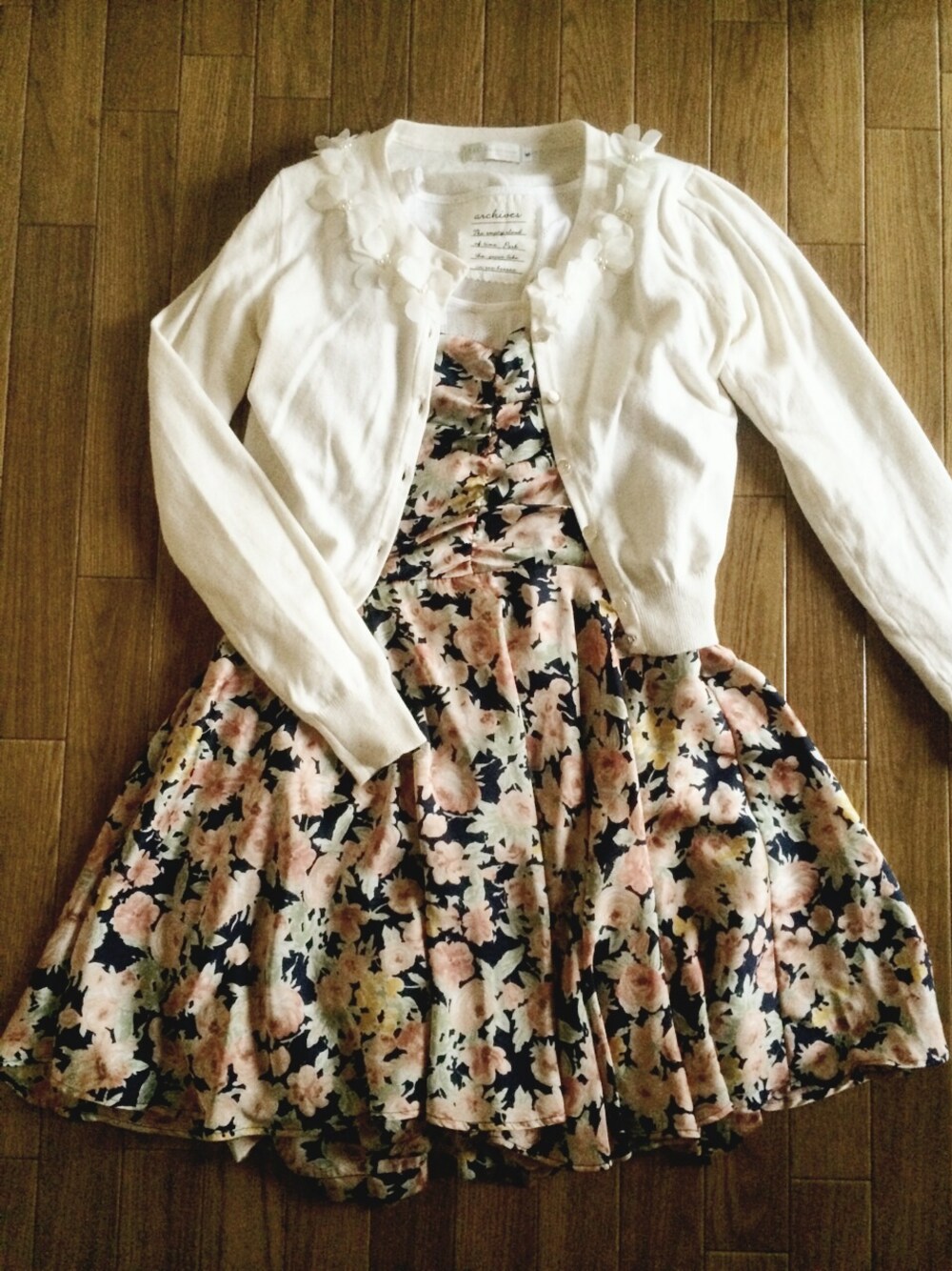 ショート丈のカーデを合わせて甘めに*