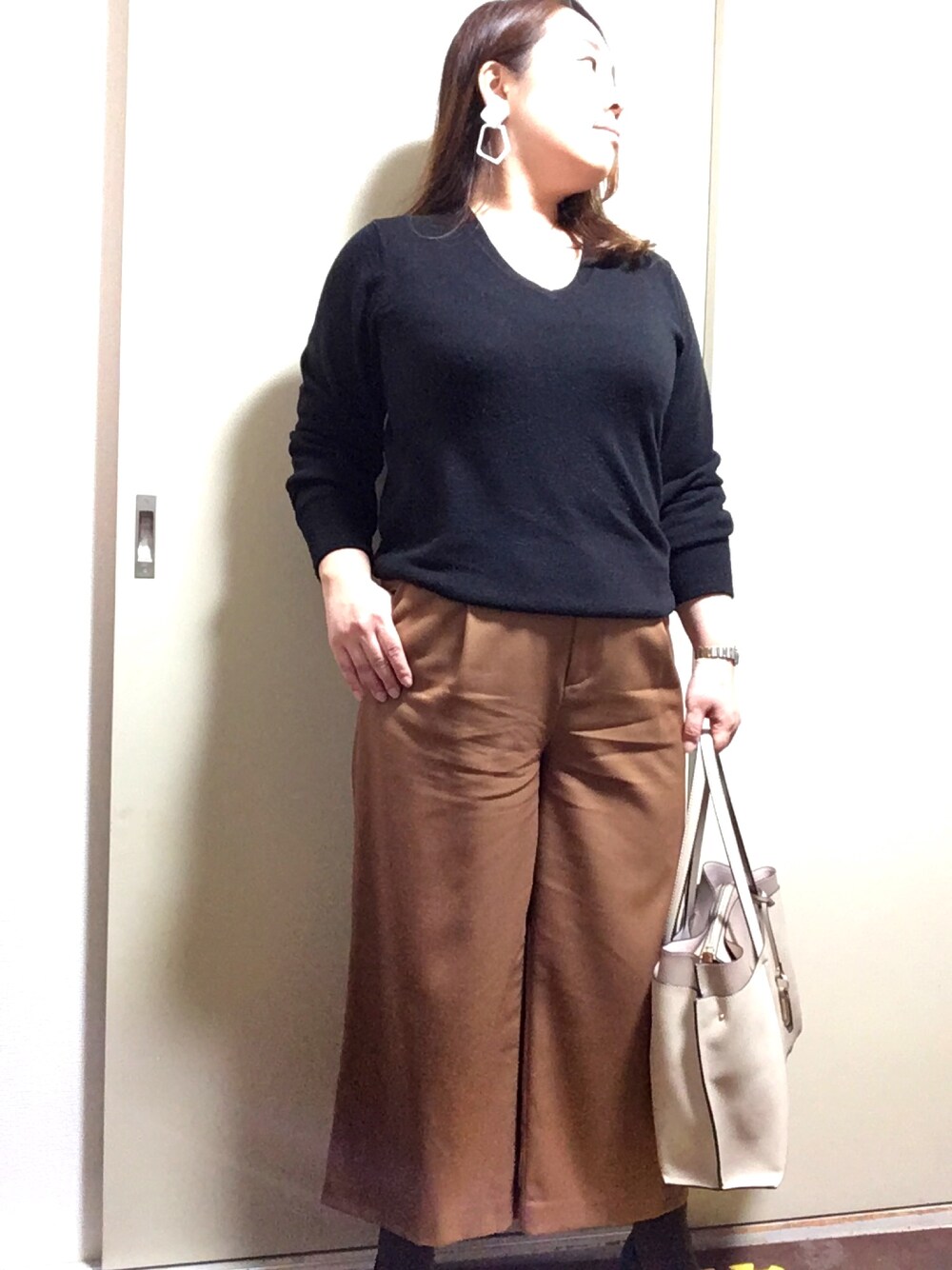今日の通勤コーデです。 昨日投稿した大振りイヤリングをメインにして、あとはシンプルなコーデにしてみました。