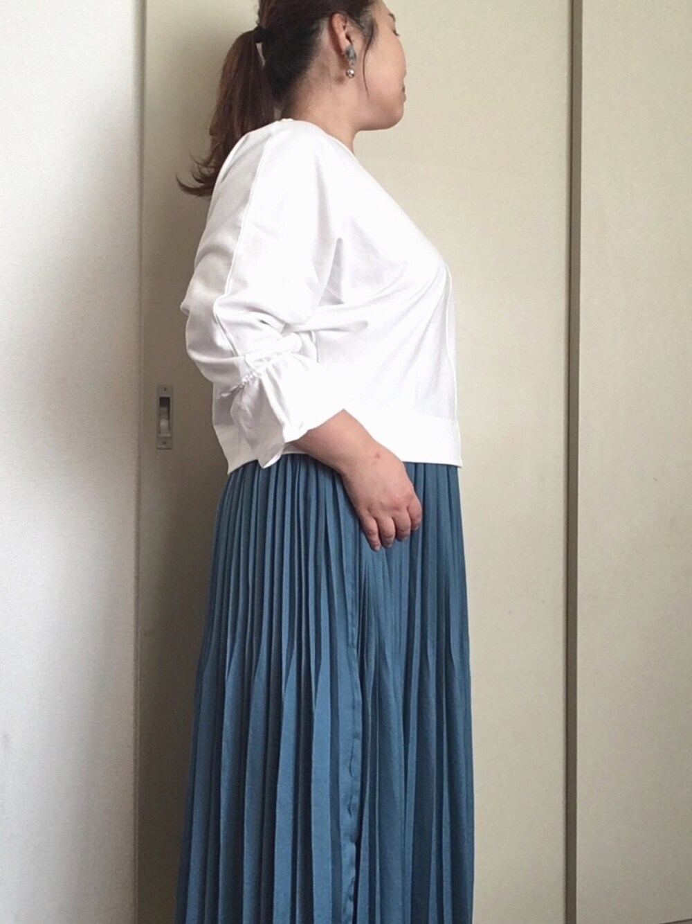 おはようございます😃 今日の通勤コーデです。 前のコーデと似てますが、トップスを白にしました。 やっぱり白にすると 一気に春らしくなりますね🌸
