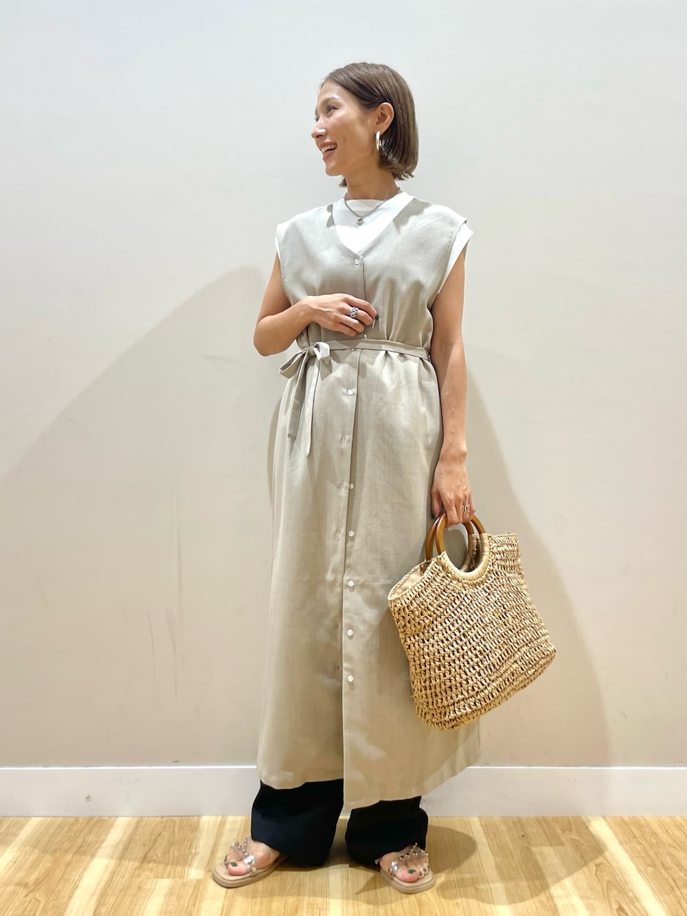 りんね(warehouse THE OUTLETS KITAKYUSHU)のワンピース「『セットアップ対応』リネンライクウエストマークワンピース」を使ったコーディネート