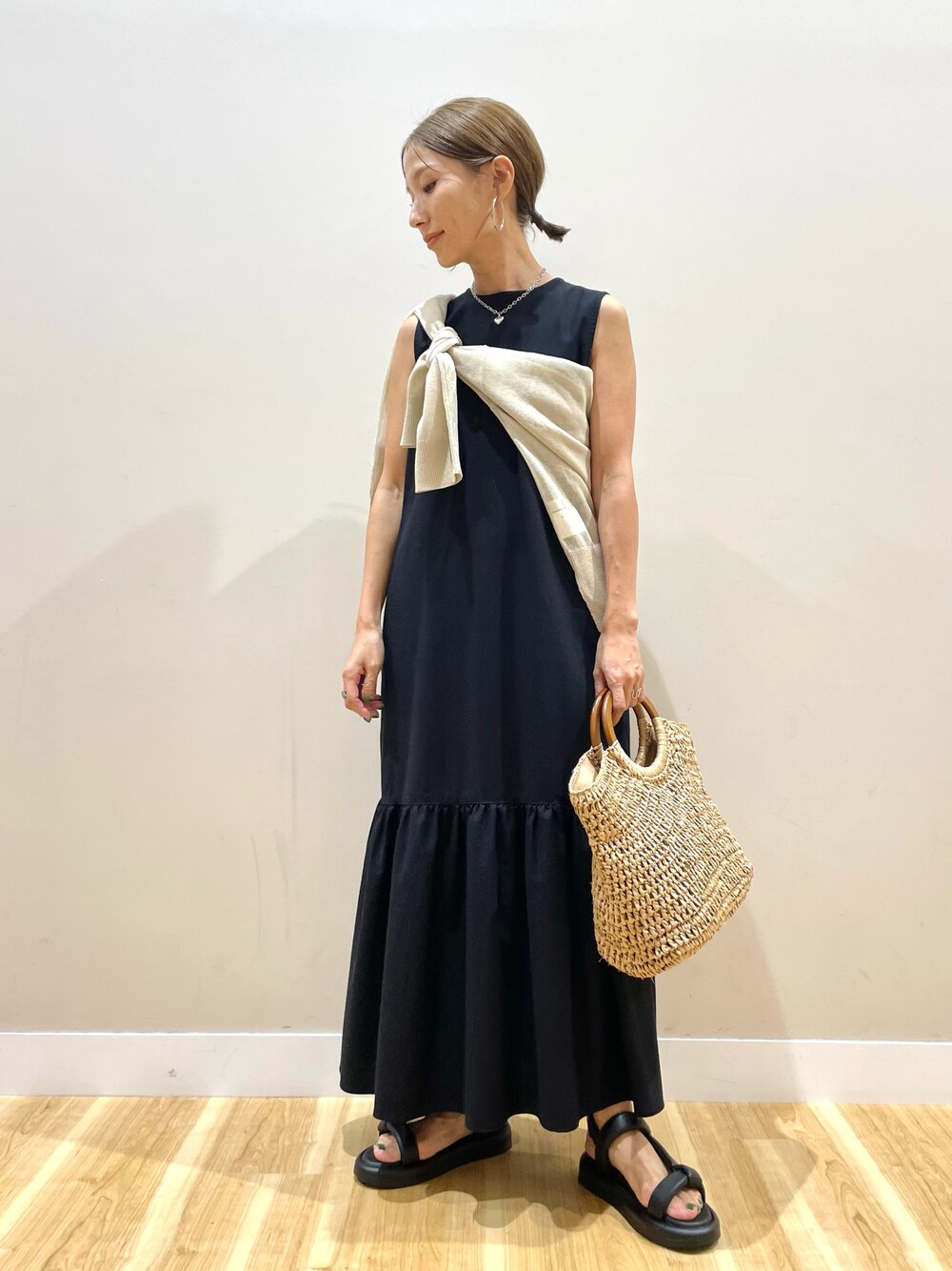 りんね(warehouse THE OUTLETS KITAKYUSHU)のワンピース「リネンノースリーブワンピース」を使ったコーディネート