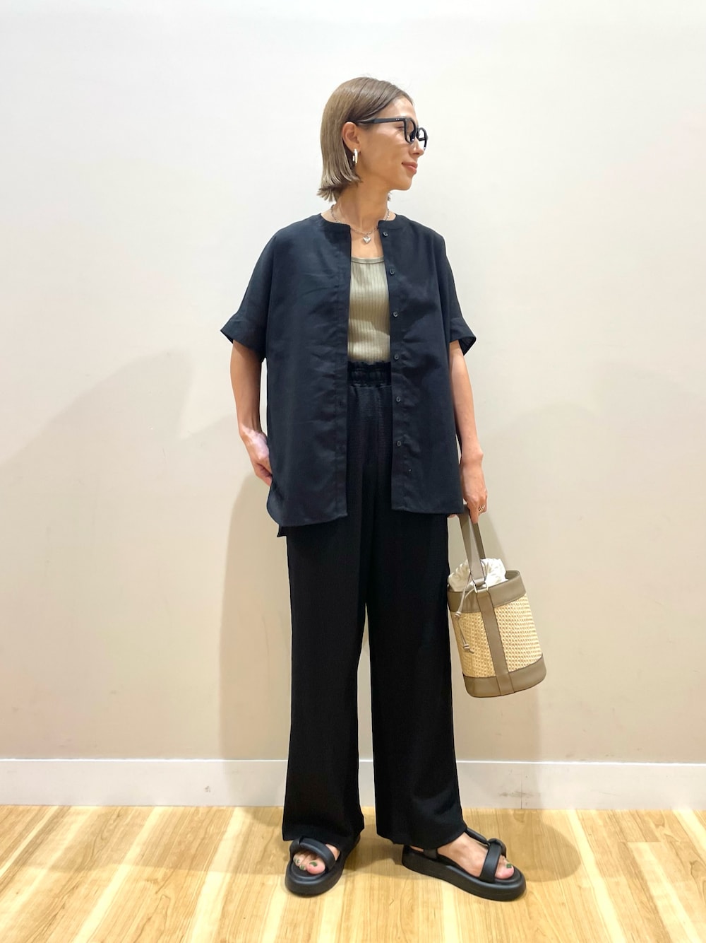 りんね(warehouse THE OUTLETS KITAKYUSHU)のシャツ/ブラウス「ハイパフォーマンスリネンフレンチシャツ」を使ったコーディネート