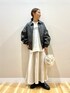 ご覧頂きありがとうございます🥰 ヴィンテージぽい加工がトレンドなレザージャケット✨ 程良いゆとりで、バランス良く着られる丈感です! ギラギラ過ぎないラメ感のニットは シンプルロゴがコーデを邪魔せず、 さりげない主張をしてくれます👌 フェイクスエードのスカートは、 綺麗目にもカジュアルにも✨