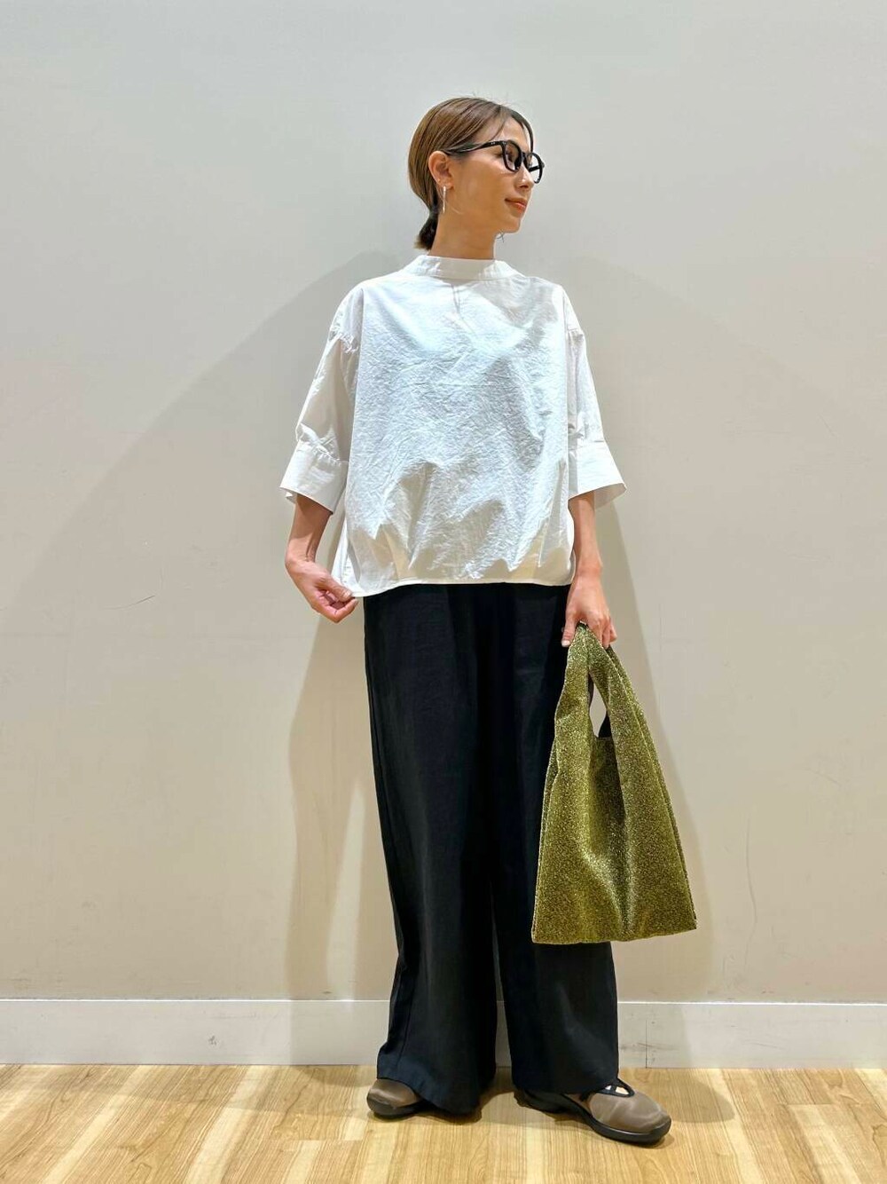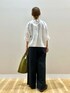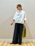 ご覧頂きありがとうございます🥰 一枚でおしゃれ感の出る五分袖のブラウス 後ろの首元のジップもポイントです 清潔感、少しモード味も感じます 綺麗目なカジュアルがお好みの方におすすめです🫶🏻 リネンレーヨンの素材感がナチュラルな雰囲気のパンツ 丈感をゆったりと履きたくて、 157cm普段マイサイズSですが Mで床に付かないちょうど良い丈感でした!