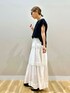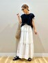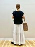 ご覧頂きありがとうございます🥰 バックボタンがポイントのTシャツは、 クルーネックにフレンチ袖で綺麗なシルエット。 シンプルで使いやすいので、一枚でも、 ワンピース等のインナーにも色々使えます👌 ボトムスのティアードスカートは、 動く度可愛いボリューム感。 ティアードにさりげないチェックの様な模様で 凝った印象の生地感です。 コットン素材が、可愛くなり過ぎずナチュラルな 雰囲気に🍀