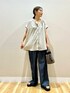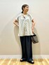 ご覧頂きありがとうございます🥰 サラッと軽い生地感で、この時期にピッタリなブラウス ゆるくAラインになったシルエットがスタイルアップ見えし、 スキッパーデザインで首元がスッキリと見えます。 襟や背中のさりげないフリルデザインがポイントです✨ ボトムスのレーヨンデニムワイドパンツは、 普通のデニムとは違いツヤ感のある生地で シンプルコーデも大人カジュアルな雰囲気に。 ゆるっとしつつ形がとっても綺麗です🫶🏻