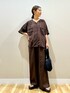 ご覧頂きありがとうございます🥰 新作の、ステッチが効いたデザインのシャツは 首周りが綺麗に見えるカッティング。 とても軽くサラッとしています 前を開けて羽織にも! 似たブラウスカラーのシャーリングパンツは ウエストのゴム部分がキュッとシャーリングに なっていて、インしても綺麗に見えます ワイドながら足が綺麗に見えるシルエットです! 丈感は157cmの私で短過ぎず長過ぎず、 ちょうど良く履けます🥰