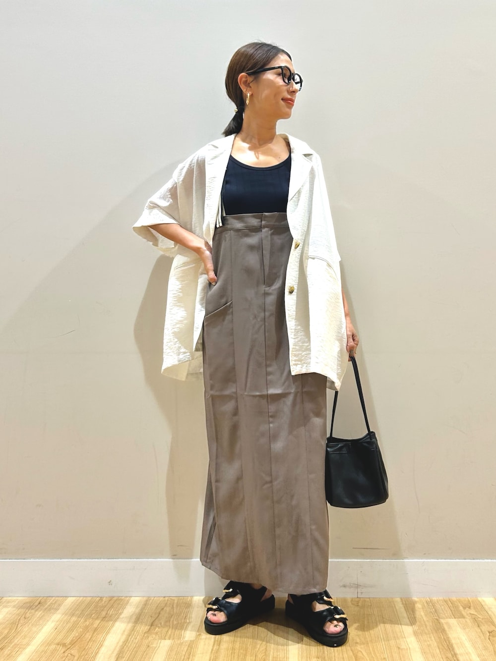 ご覧頂きありがとうございます🥰 シアー感のあるジャケットは いつものコーデに羽織るだけでおしゃれに✨ ドルマン型でゆったり着られます サスペンダーがついた様なデザインのワンピースは 胸下からIラインになったからシルエットで スッとスリム見えします 胸周りゆとりがあるので、楽に着られます👌