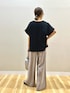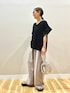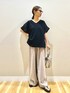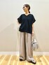 ご覧頂きありがとうございます🥰 袖のサテン生地の切り替えがポイントのトップスは どんなボトムスとも合う絶妙な丈感、ゆったり感で 首元の綺麗なVネックがカジュアル過ぎず 大人な雰囲気になります。 サイドのスリットもメリハリを出してくれます✨ 新作パンツはゆるっとシルエットの形がとっても良く、 スエードの様なベロアの様な、控えめな光沢感のある生地で 大人カジュアルなワイドパンツです! ウエストゴムに紐付きで、 トップスインするスタイルも👌