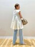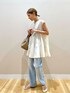 ご覧頂きありがとうございます🥰 たっぷりフレア感が可愛いブラウスは 首元やお袖がシンプルデザインで 甘過ぎずカジュアルに着て頂けます! 程よいシアー感、シャカシャカとした素材が トレンド感あります✨ ストレートデニムは足がスッキリ見える形で ライトブルーの色味も綺麗です💕