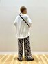 ご覧頂きありがとうございます🥰 今から活躍間違いなしの5部袖のTシャツは シンプルで大人っぽいロゴが使いやすく、 Aラインで長めの丈感はお尻まで隠してくれるので リラックスしてご着用頂けます🫶🏻 柄が印象的なパンツはナチュラルな素材感で ゆったりと履きやすいです!