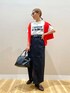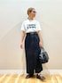 ご覧頂きありがとうございます🥰 キャッチーなロゴTはコンパクト目なサイズ感で バランス良く着て頂けます! ネイビーのロゴがツボです✨ ストレッチ性のあるデニムのタイトスカートは 普段のボトムスサイズSでFREE着用 ウエストが緩くベルトをしましたが、 とっても綺麗なシルエットでした🥰