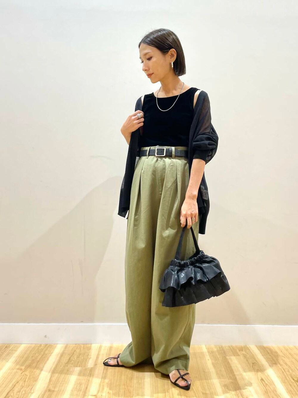 りんね(warehouse THE OUTLETS KITAKYUSHU)のショルダーバッグ「フリルメタリックミニバッグ」を使ったコーディネート