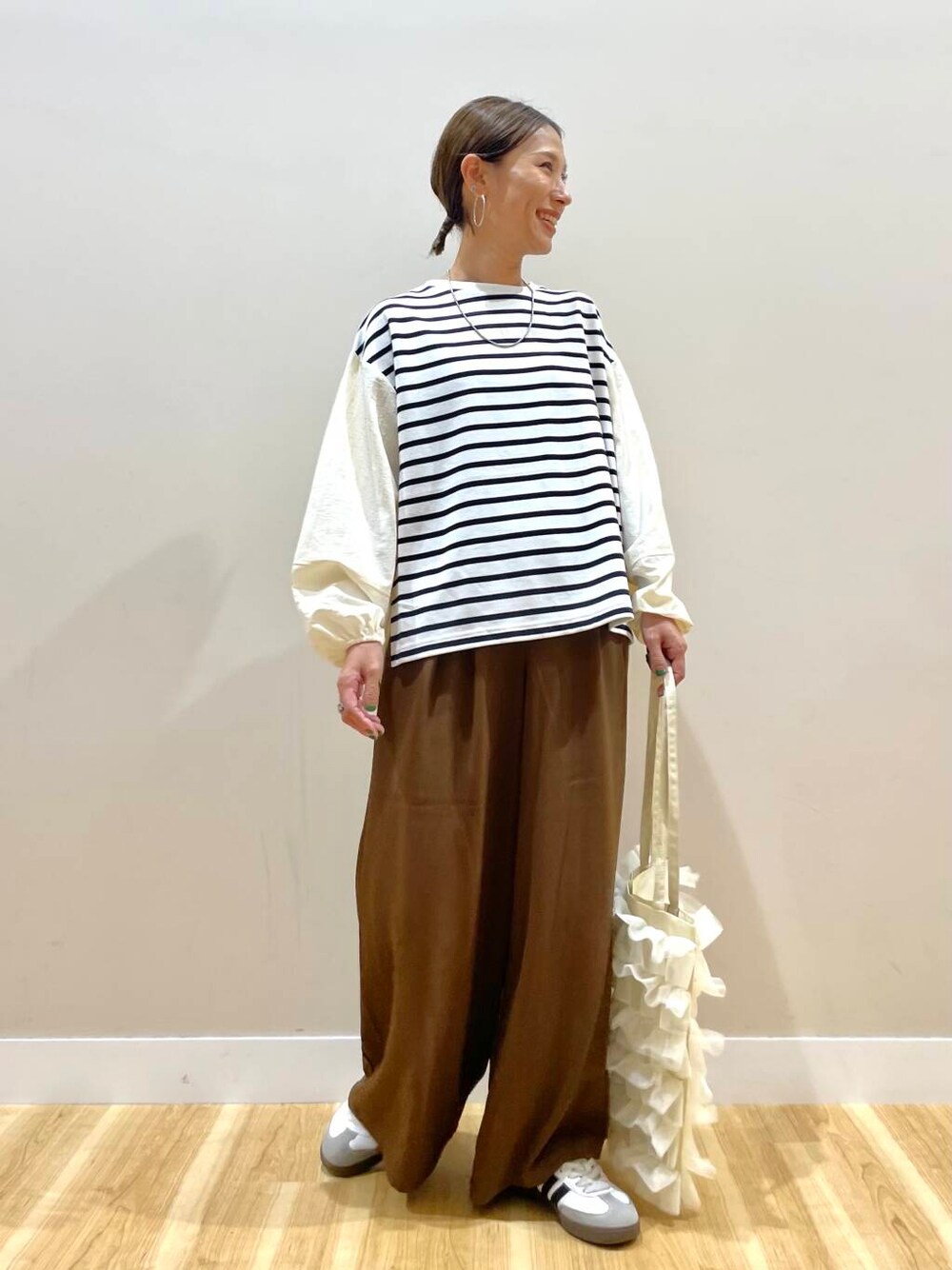ご覧頂きありがとうございます🥰 お袖と背中がナイロン素材になったプルオーバーは 一枚でおしゃれ見えしつつ楽ちんな着心地です✨ タック入りで綺麗目なワイドパンツは ツルッとした素材感が気持ち良く、 ブラウンの色味が理想的! グレーやブラックとも合わせて着てみたいです🫶🏻