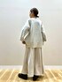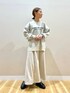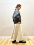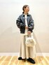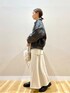 ご覧頂きありがとうございます🥰 ヴィンテージぽい加工がトレンドなレザージャケット✨ 程良いゆとりで、バランス良く着られる丈感です! ギラギラ過ぎないラメ感のニットは シンプルロゴがコーデを邪魔せず、 さりげない主張をしてくれます👌 フェイクスエードのスカートは、 綺麗目にもカジュアルにも✨