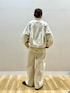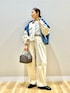 ご覧頂きありがとうございます🥰 お袖のボリューム感が可愛いZIPブルゾンと バレルレッグシルエットのパンツを、 セットアップで着てみました🫶🏻 オールホワイトにデニムシャツの差し色で 春らしいカラーリングに☘️ アイボリー寄りなので肌色から浮かずに 着られます。 パンツはフリーサイズでベルトで調整しています。 157cmで丈感ちょうど良かったです! ゴワゴワせず柔らかな履き心地でした✨