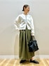 ご覧頂きありがとうございます🥰 コーデが春っぽくなるホワイトコーデ。 カーキとの相性抜群です✨ ダブルジップのカーディガンは 短めな丈感ですっきり見え。 シルバーのジップが大人カジュアルな雰囲気です🫶🏻 トップスとしても羽織としても使いやすいです✨ 中に着たニットは、全体に施されたシャーリングで 一枚でも存在感があります。 軽いシアー感や袖口のフレアが女性らしい雰囲気です ボリューム感あるフレアスカートは 程良い光沢のある生地が、 コーデに大人の厚みを持たせてくれます✨ 長過ぎない丈感で足捌きもよく、 ウエストはゴムで楽ちんながら それを感じさせない綺麗目な印象のスカートです🫶🏻