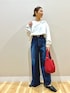 ご覧頂きありがとうございます🥰 ボートネックスウェット 切りっぱなし風の裾がこなれ感✨ 程良いショートな丈感と、身幅のワイド感が シンプルコーデも可愛くしてくれます👍 Leeのデニムは本当にスタイル良く見せてくれます🥺 どの角度から見ても綺麗なシルエットです!