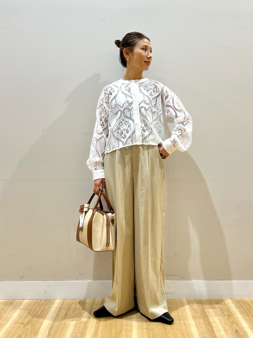 ご覧頂きありがとうございます🥰 総レースが涼やかなクロップドシャツ。 身幅や袖周りはゆったりしているので 肌見えが気にならず着られます。 下にはボトムスと同色のキャミやタンクトップがオススメです! タック入りのワイドパンツは 少し光沢のある生地が高見え。 形が凄く綺麗です! カジュアルにもオケージョンやオフィスにも使えそうです。 フリーサイズですが普段Sサイズの私が履いて ブカブカではなくちょいユルぐらいだったので 少し小さめのフリーサイズかなという印象でした!丈感も長過ぎずそのまま履けそうです🫶🏻