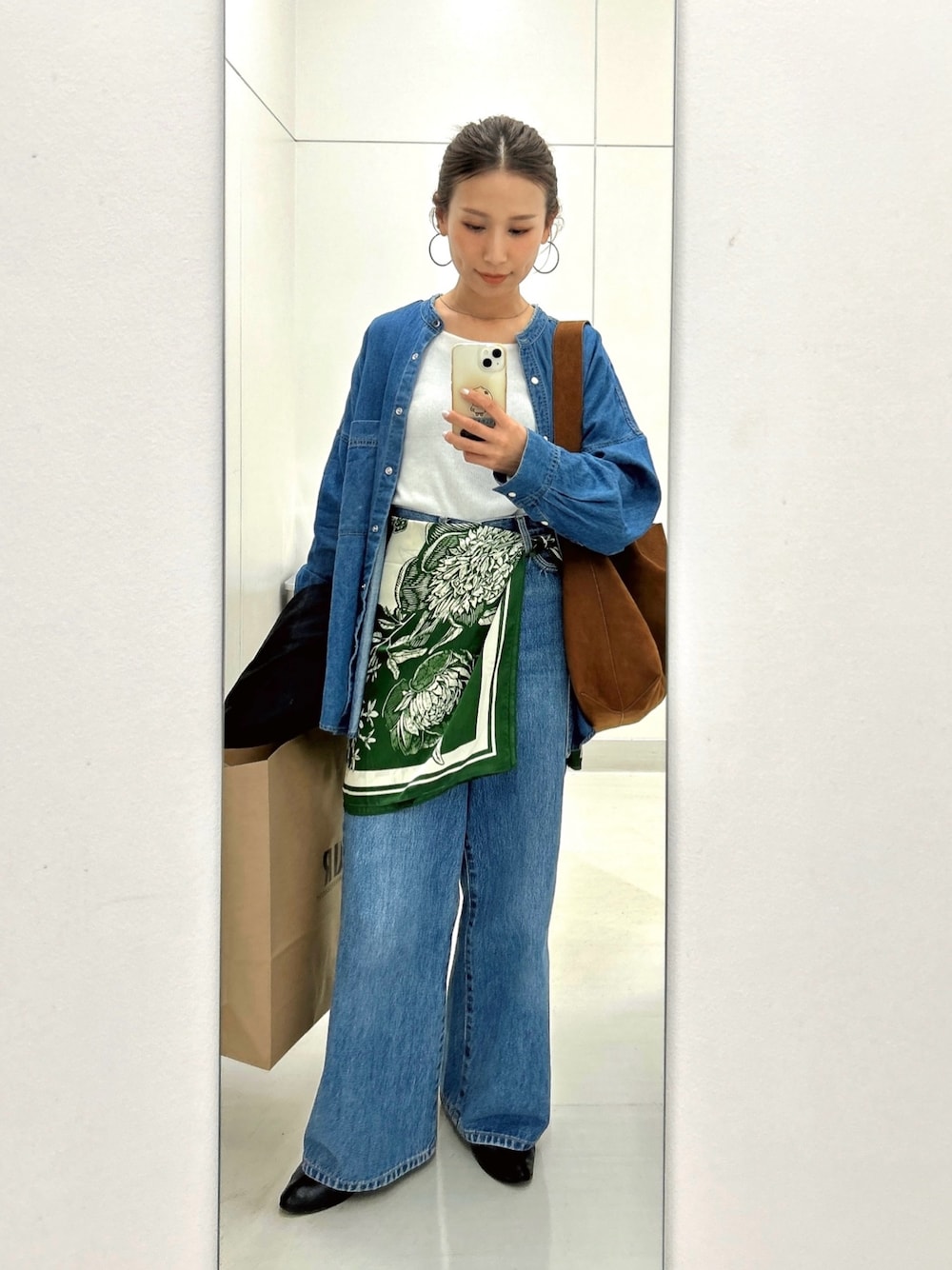 ご覧頂きありがとうございます🥰 出勤コーデ✨ デニムシャツはトップスとしても、 羽織ってもよし、 肩掛けや腰巻きにもよしな万能アイテムです! バレエネックが綺麗で、 程良いコンパクトさがこれまた使い勝手の良い カットソーもヘビロテアイテム🫶🏻