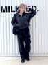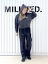 石田 莉央(MILKFED.新宿(ルミネエスト))のパーカー「RHINESTONE LOGO SHORT ZIP UP HOODIE」を使ったコーディネート