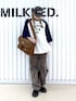 石田 莉央(MILKFED.新宿(ルミネエスト))のショルダーバッグ「BAR LOGO MESSENGER BAG」を使ったコーディネート