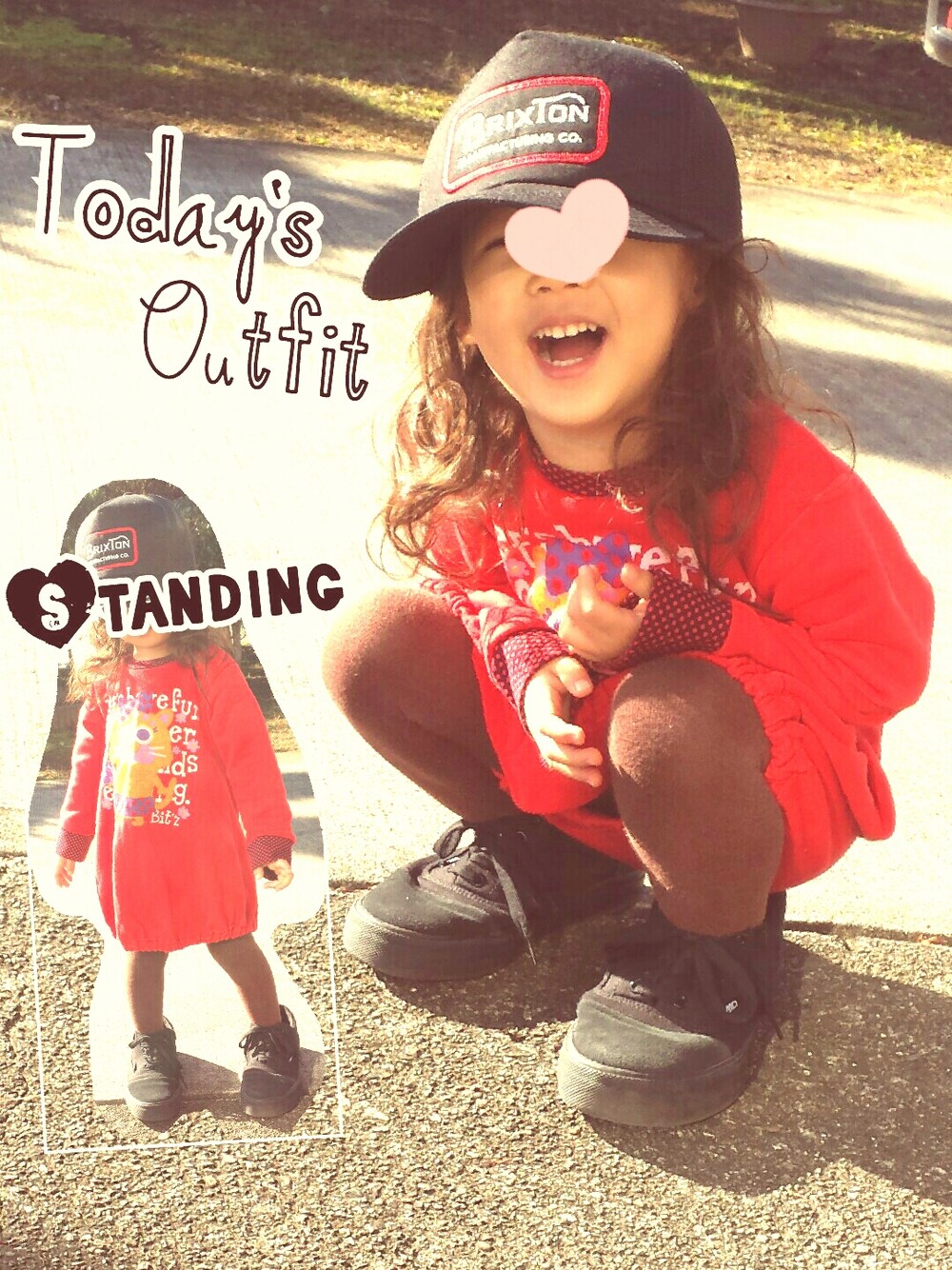 スニーカー→ママの キャップ→パパの ぶかぶかコーデ、完全に撮影用(笑) 本人は落ちてくる帽子と、言うこときかない靴に大ウケでした(*´∇`*)
