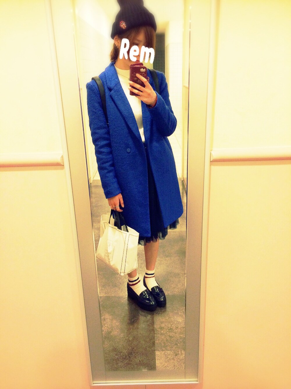 お気に入りのブルーコート☺️ 今日はお台場でお買い物
