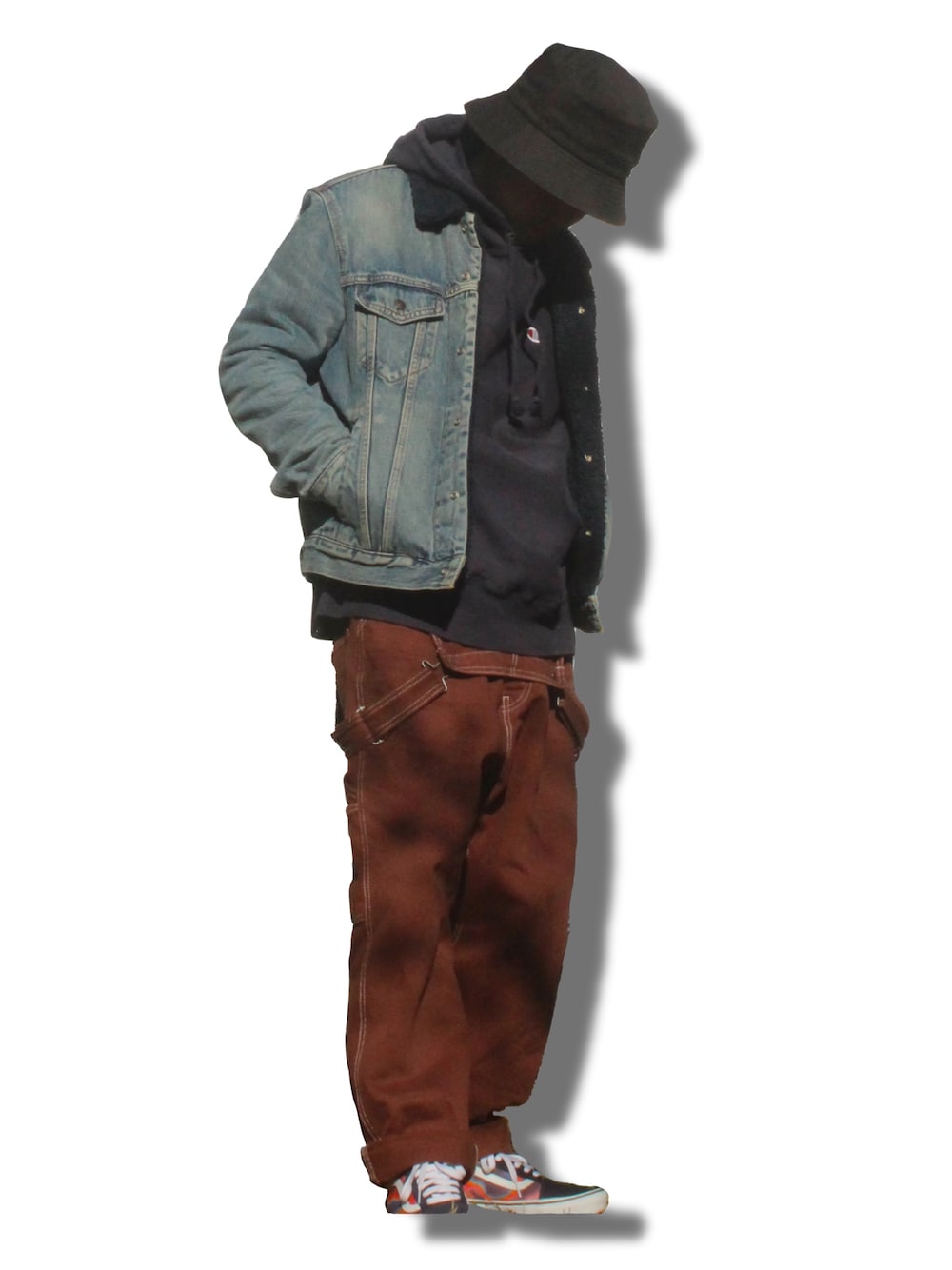 ご覧いただきありがとうございます! 今回は、デニムジャケット羽織ったストリートコーデ💪😤 オーバーオールを折り曲げて着ているところが今回のワンポイントです。笑笑