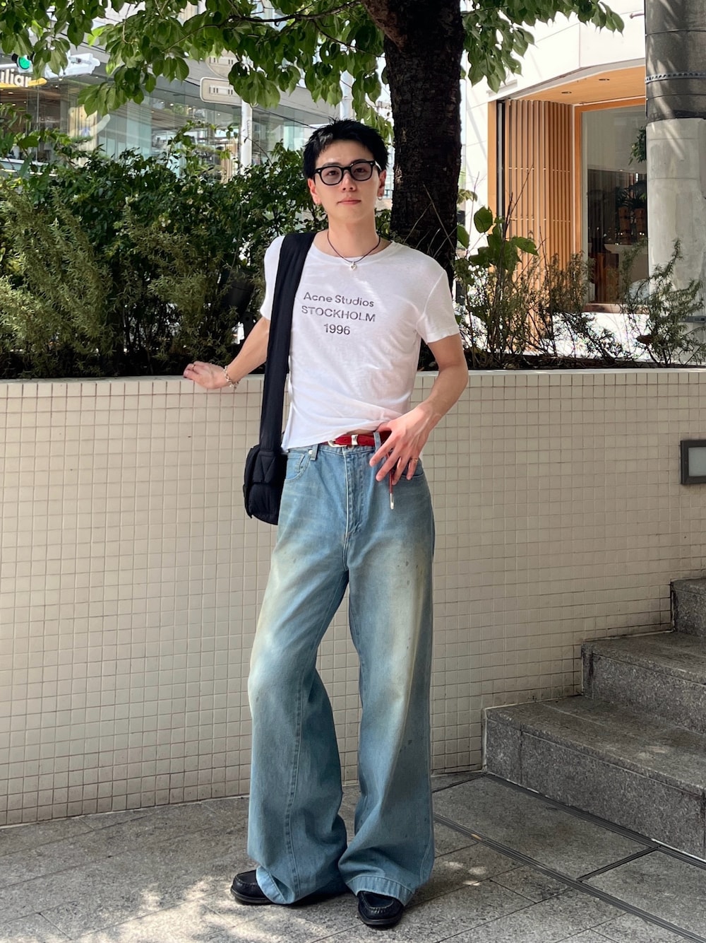 赤のベルトでシンプルになりすぎないようにコーデ組んでみました
