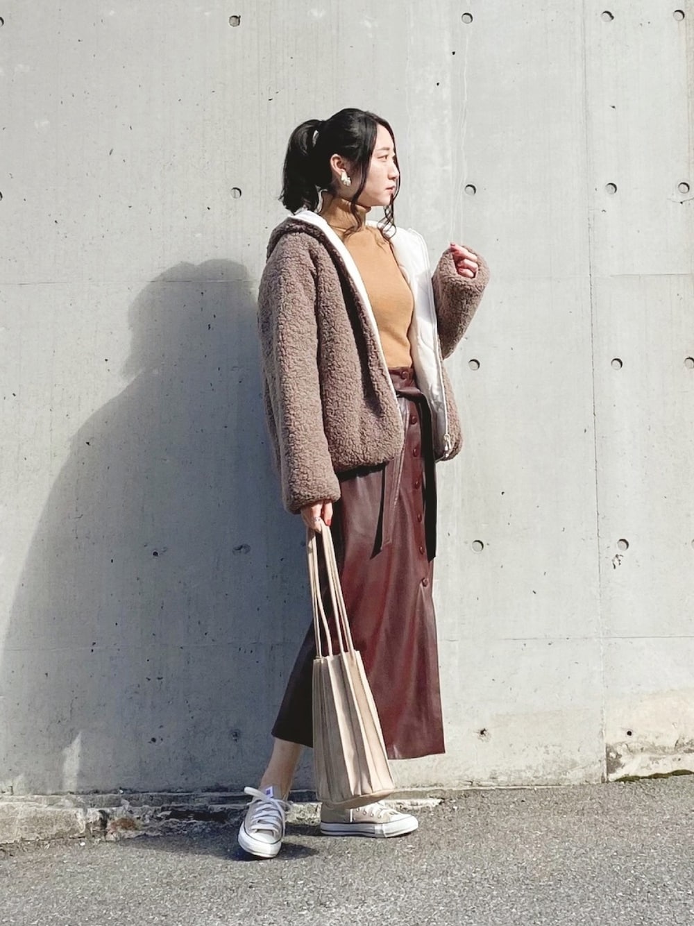 昨日のコーデ👗 ZARAで買った レザー風スカートが主役です🙆🏻♀️ ストンと落ちたシルエットで 綺麗めにもカジュアルにも着れます! 今回はスニーカーやボアブルゾンで カジュアルにしました👟 ボアブルゾンは大好きな KOBE LETTUCE! 袖丈が心配でLサイズにしたら 大きかったです(笑) でもこれはこれで可愛い!🧸 11月もありがとうございました◎ Instagram ▷▷ rina3_12