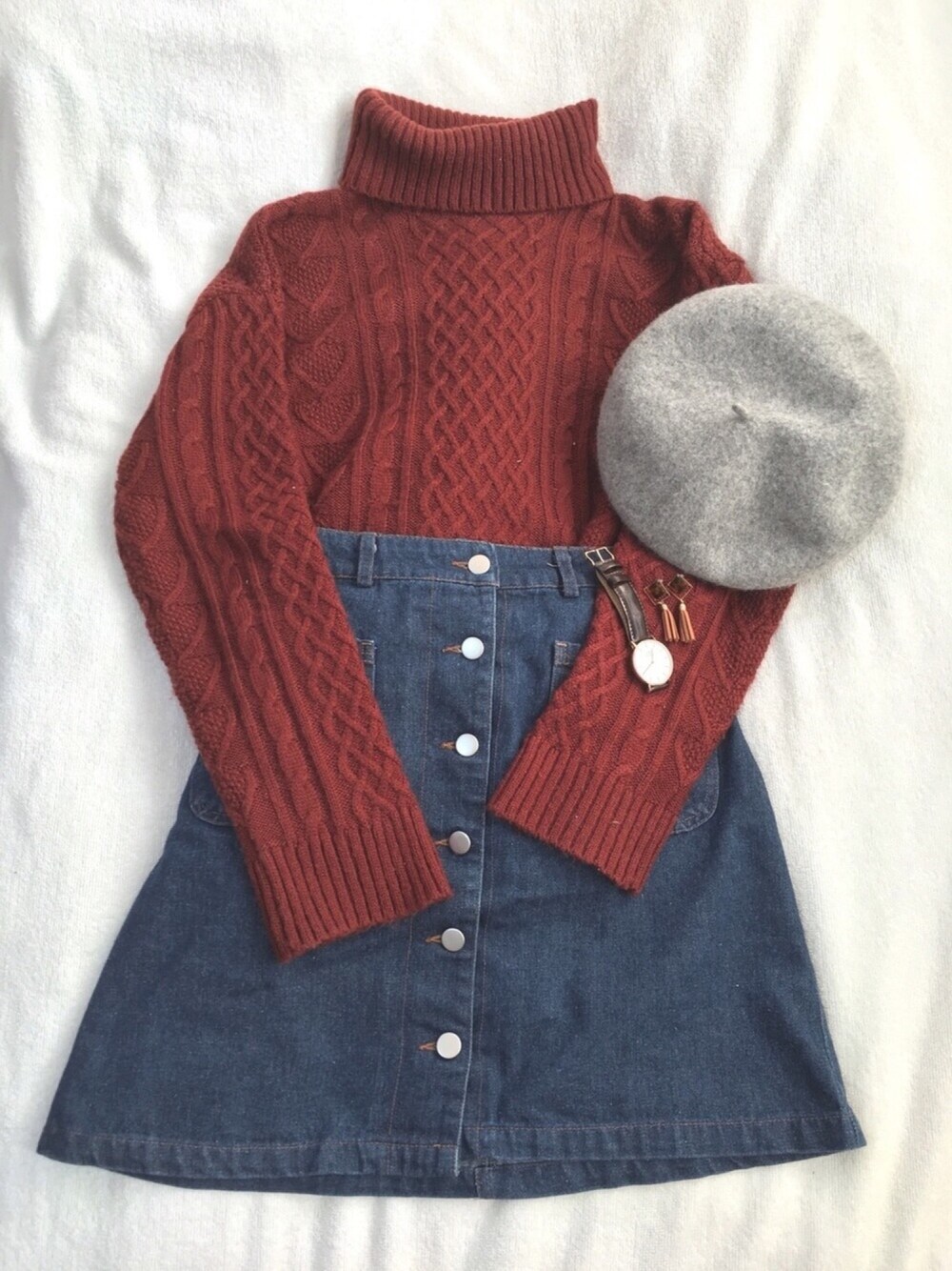 りんのニット/セーター「ケーブルタートルビッグニット」を使ったコーディネート