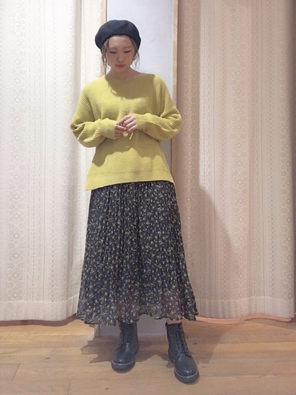 イエローニットを差し色にしました✨ 形もベーシックかつシンプルでとっても使いやすいですよ!