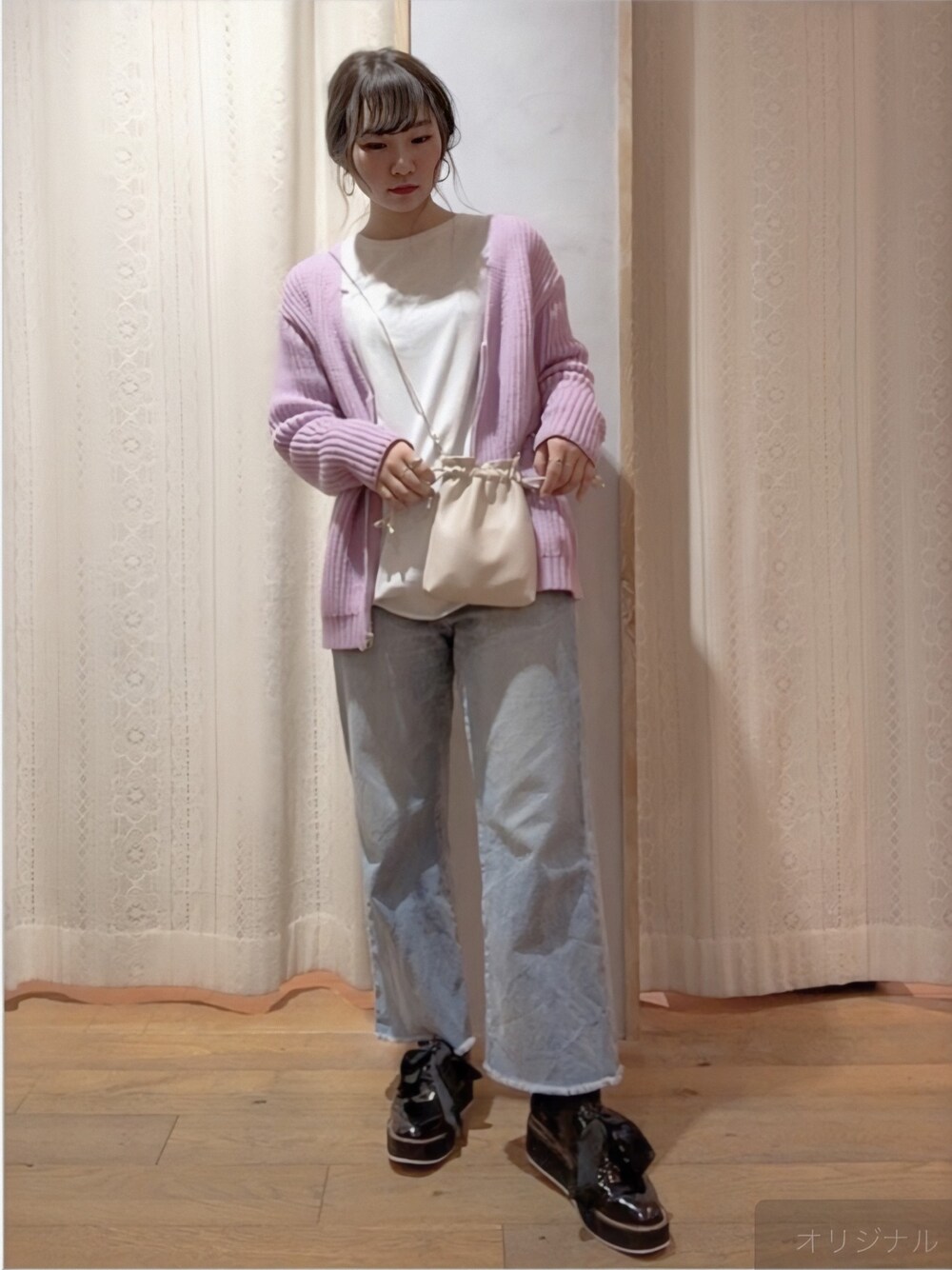 春の定番カラーピンク🌸 薄めデニムと合わせて春っぽカジュアルに。