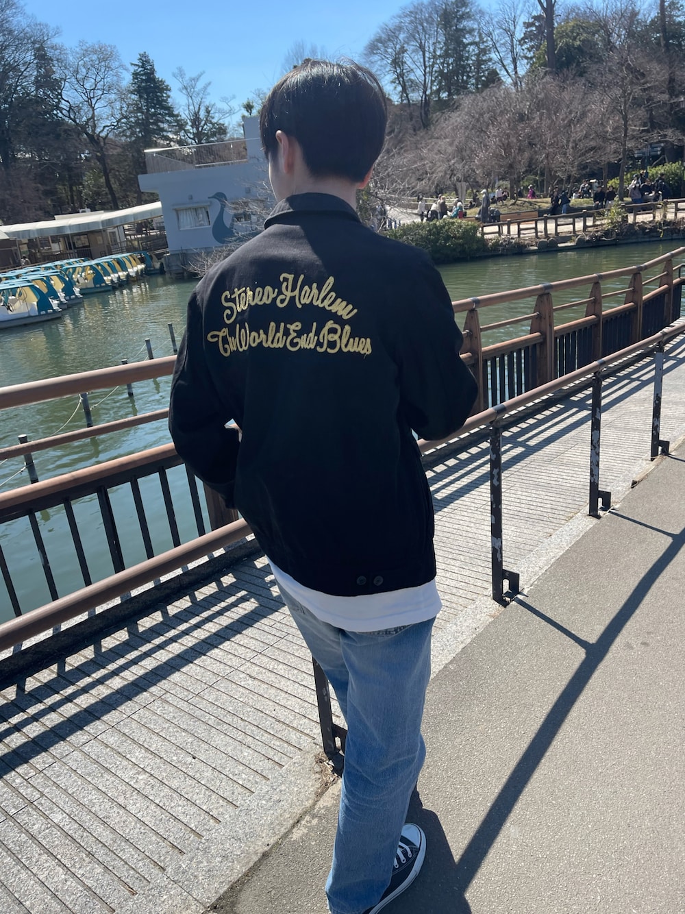 息子です。 今日は吉祥寺まで愛車MATEのメンテナンスついでに井の頭公園で散歩&古着屋巡りをしました。 今日のファッションは少しアメカジよりな感じ converseは卸したてでレザーなのでちょっと歩きにくい…