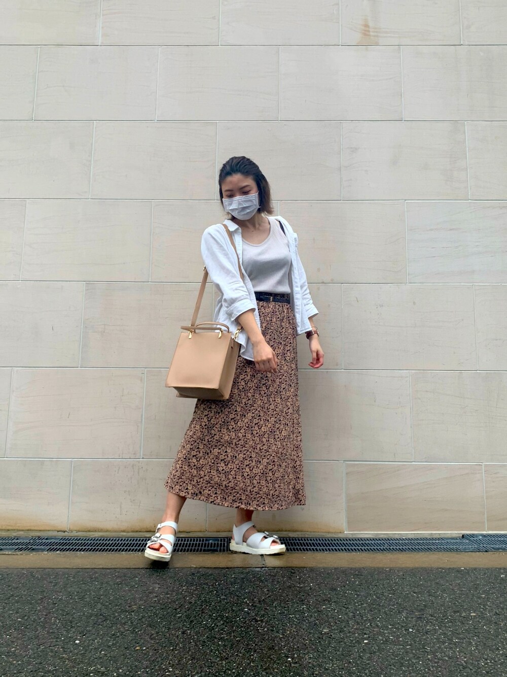 珍しいピンクベージュコーデ