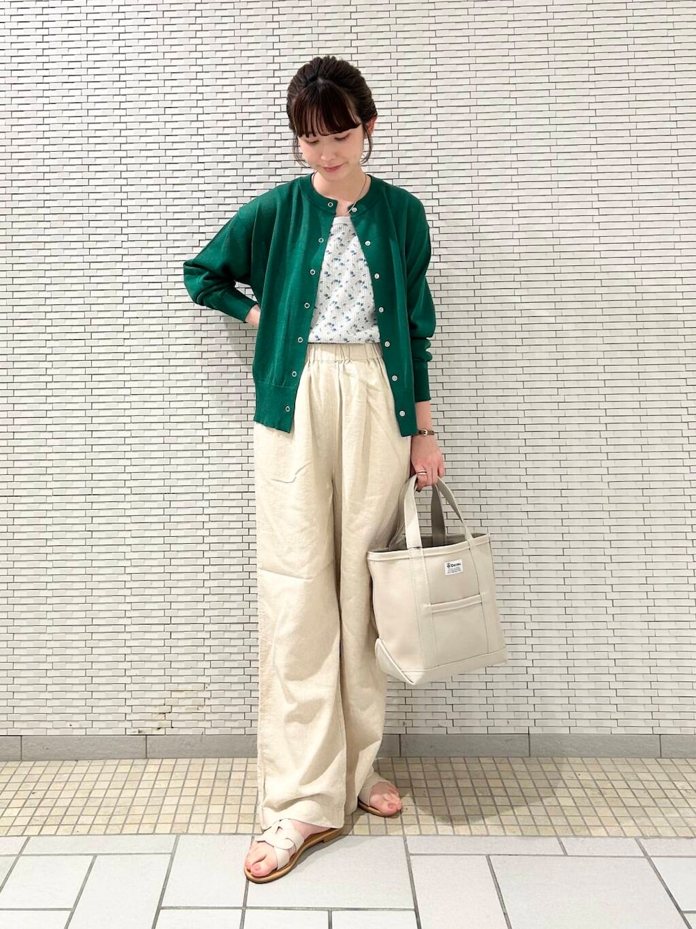 大人カジュアルコーデ◎ 冷房・日焼け対策と季節の変わり目に必須なカーディガンです☆ 柔らかい生地感で落ち感がとても綺麗なシルエットです。 着丈はコンパクトなので、ボトムス選びも困りません◎