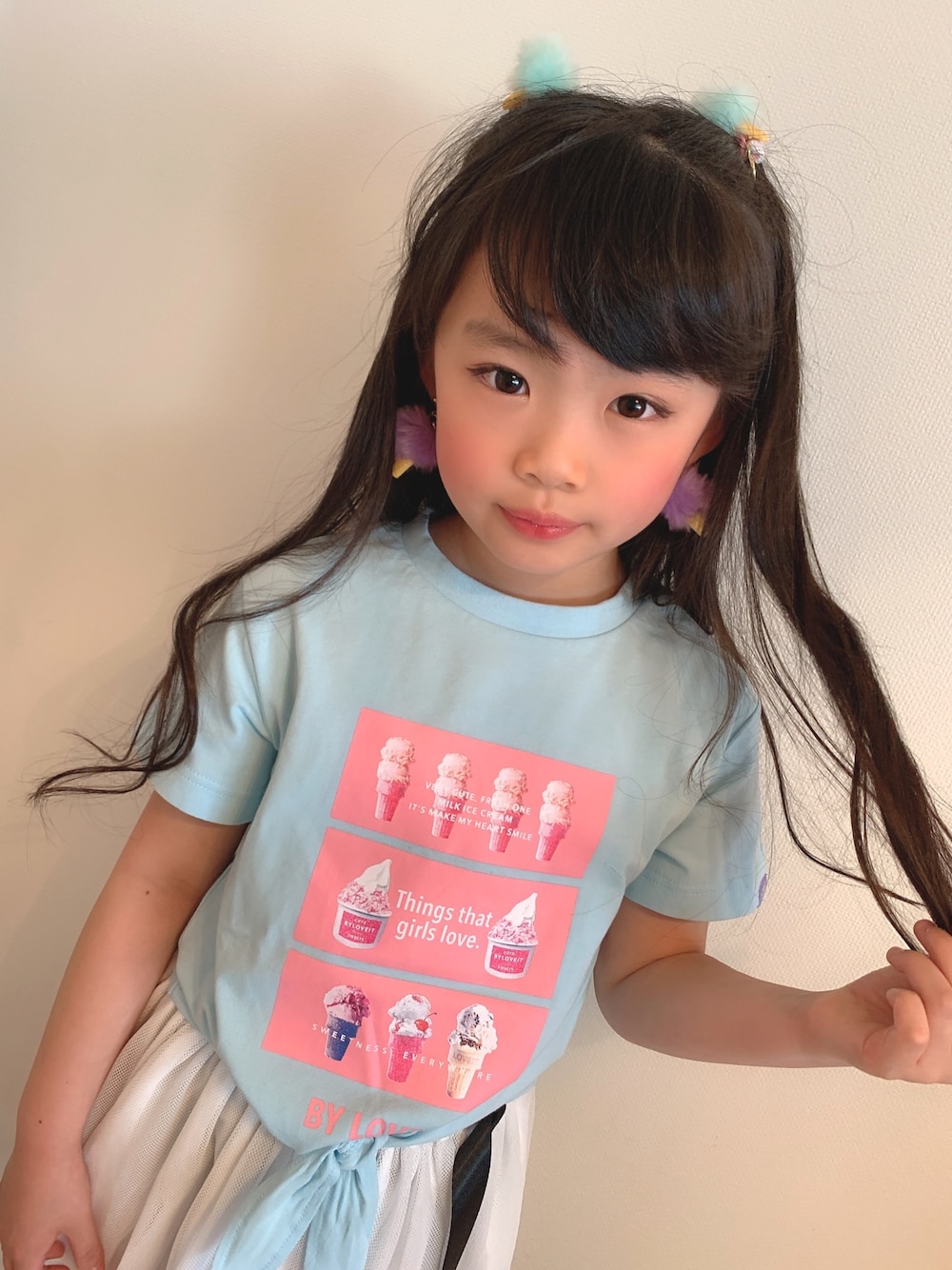 大好きなbyloveitのアイスクリーム柄Tシャツに合わせて、 ヘアゴムもイヤリングもアイスクリーム♡♡♡